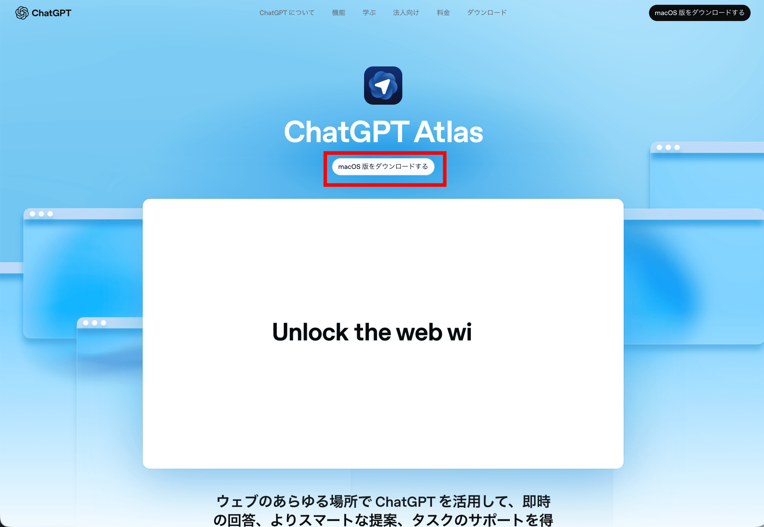 - OpenAI公式サイト(Atlasページ) にアクセス。