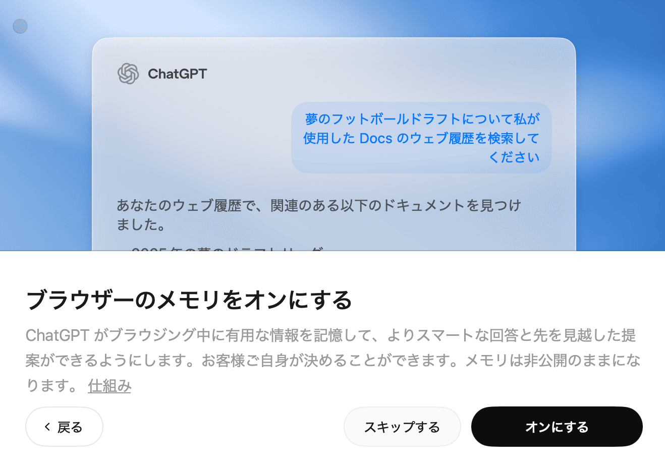 - ブラウザメモリ機能:過去の閲覧履歴やチャットを記憶して再利用