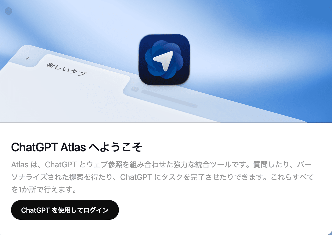 ChatGPT Atlas(アトラス)は、OpenAIが開発した「ChatGPTを内蔵したウェブブラウザ」です。