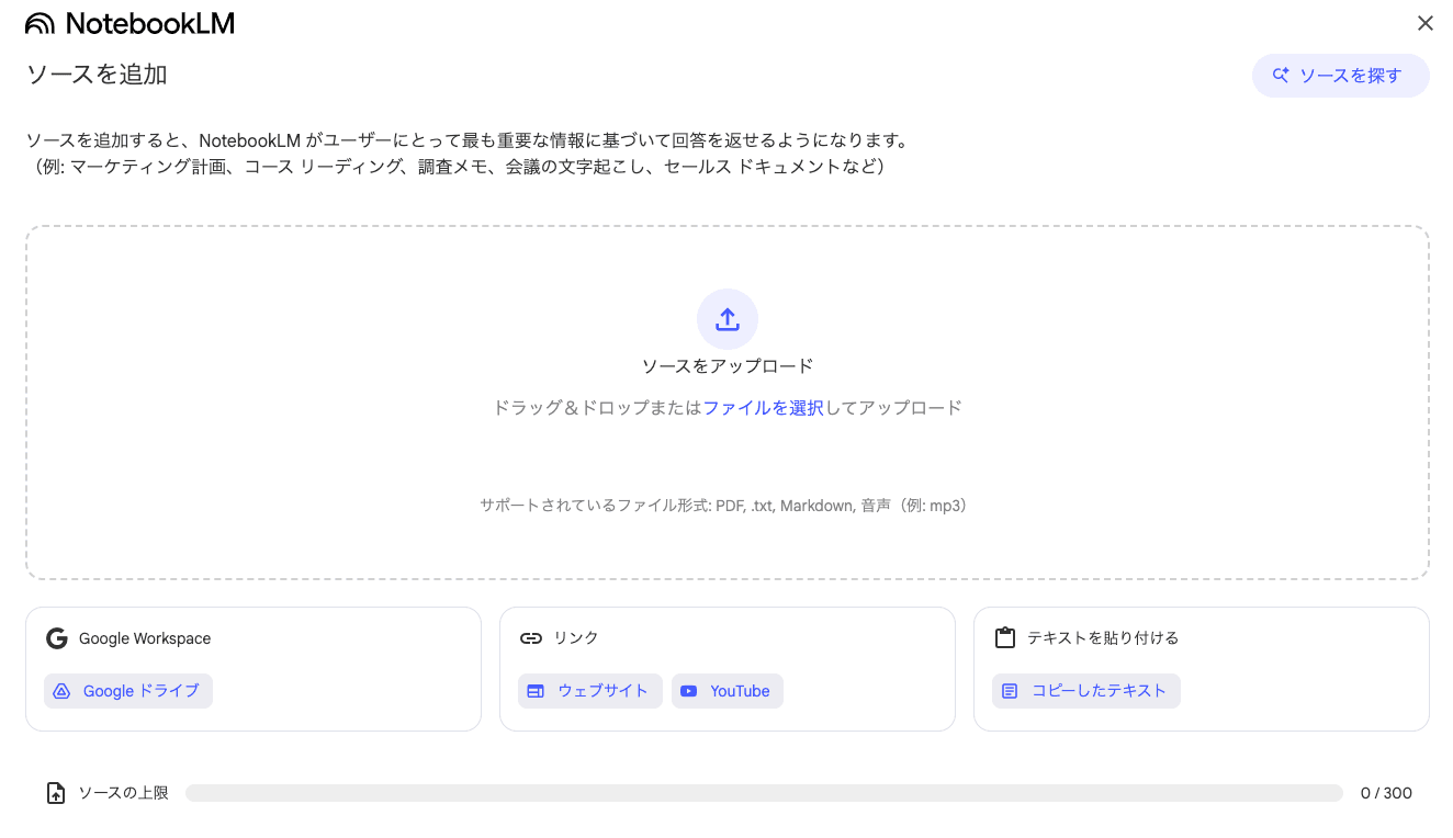 ChatGPTのように“文脈から想像して答える”のではなく、NotebookLMはアップロードされた資料のみを参照するのが特徴です。